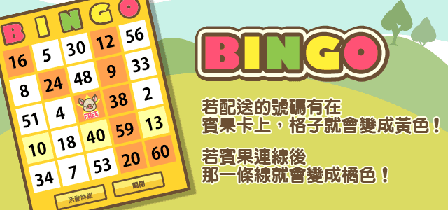 報名後,每出貨1隻豬會產生1個號碼。可以在活動看板上的賓果卡確認賓果狀態。