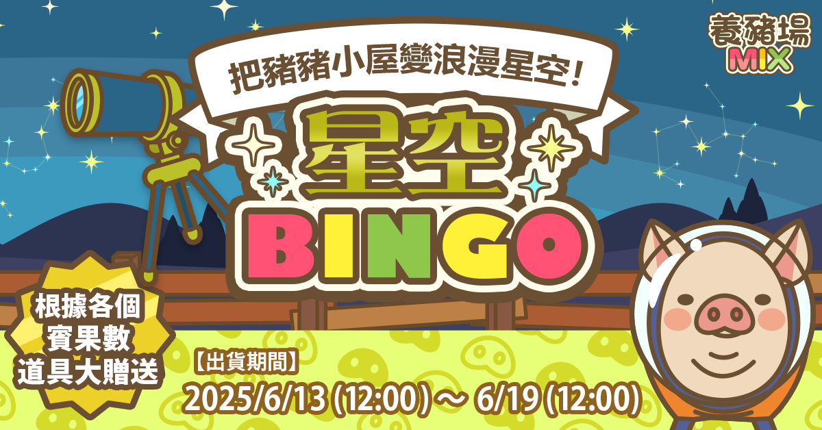 利用出貨時獲得的號碼來挑戰賓果!根據完成的賓果列數可以獲得獎品!6月13日12:00點擊豬豬小屋的看板即可參加!快來挑戰吧!